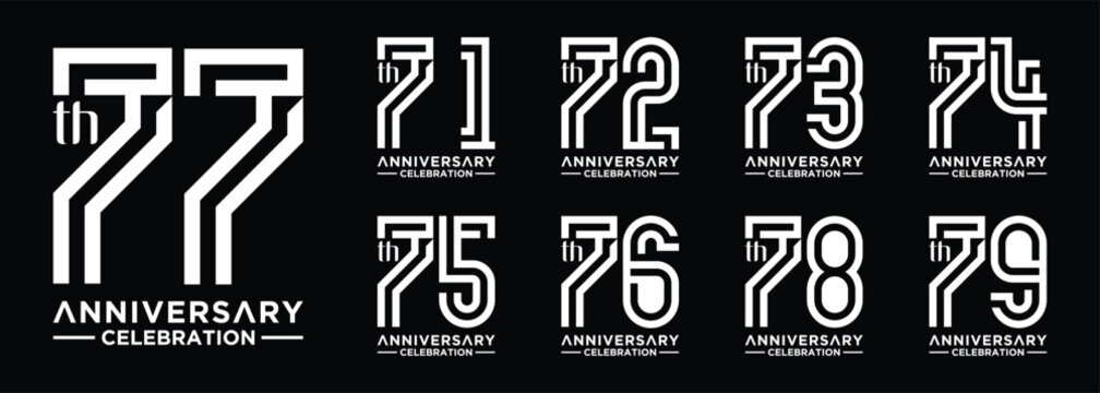 collection of 71 to 79 year anniversary logo designs with creative numbers in white on black background
