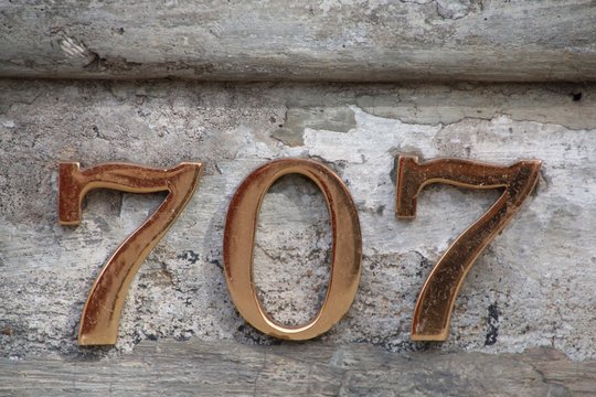 Old gold effect of 707 number with 3D glossy style Mockup.