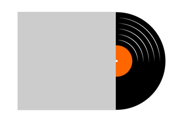 Vinyl record removing from the empty album cover. LP or long play music disc isolated on white background. New single song concept. 60s 70s 80s nostalgia theme. Vector flat illustration.