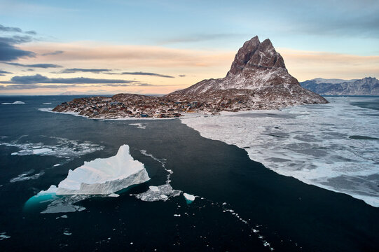 Iceberg sea-ice, Uummannaq island, 71 deg N, Greenland Arctic winter