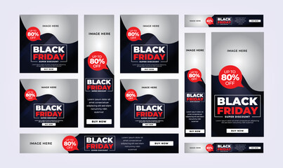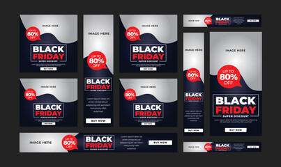 Google Ads Banner set for Black friday promotion and offer.Black friday discount, sale, offer GDN Banner set.
