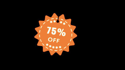 Orange starburst shaped tag with white text announcing 75 percent off isolated on a black background e-commerce promotions and digital marketing assets