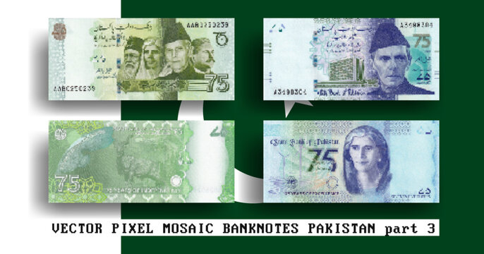 Pakistani 75 rupees bank notes money background