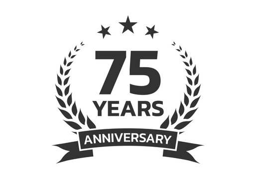 75 years anniversary laurel wreath logo or icon. Jubilee, birthday badge, label or emblem. 75th celebration design element. Vector illustration.
