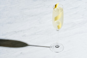 Refreshing French 75 Cocktail on White Marble