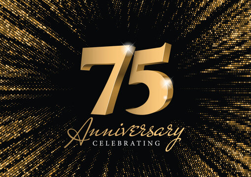 75th Anniversary Celebration with golden text, Golden anniversary vector template