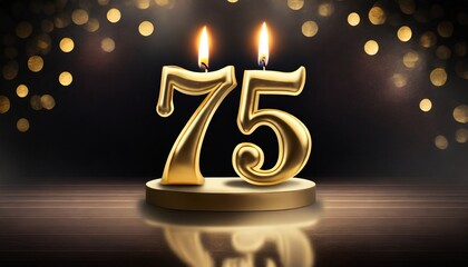luxurious dark background adorned with a golden flame illuminating a 75th birthday candle