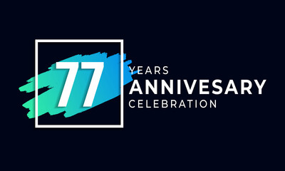 77 Year Anniversary Celebration with Blue Brush and Square Symbol. Happy Anniversary Greeting Celebrates Event Isolated on Black Background