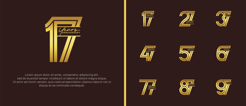 set of 70 to 79th anniversary logotype design, with golden fireworks for celebration event, wedding, and birthday, vector illustration