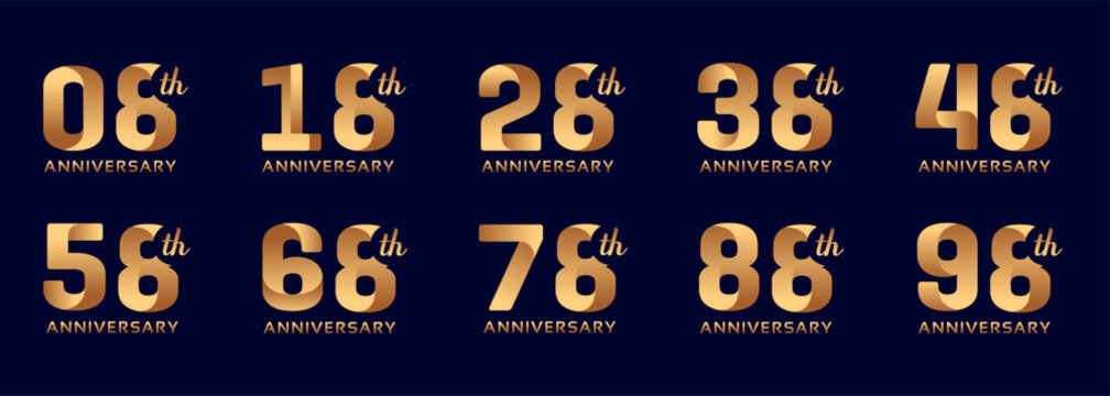 set of anniversary logo gold color and red ribbon on brown background for celebration moment