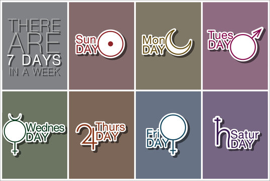Handwritten days of the week monday, tuesday, wednesday, thursday, friday, saturday, sunday calligraphy.Lettering typography.