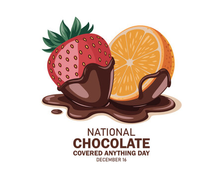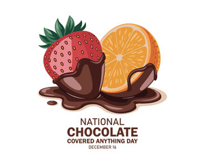 National Chocolate Covered Anything Day vector. Chocolate covered strawberry vector. Orange fruit with chocolate vector. Chocolate Covered Anything Day Poster, December 16.