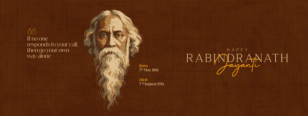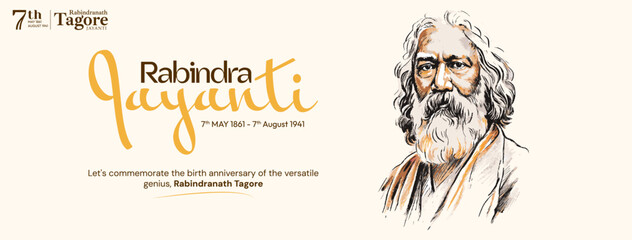 Rabindranath Tagore illustration for 22 Shey Shrabon Rabindra Jayanti Social Media Post, Web Banner, Status