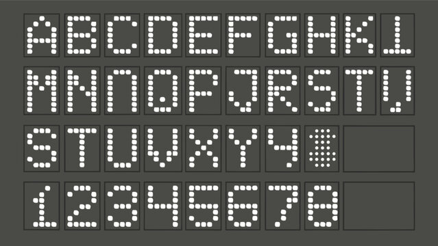 Led display alphabet font vector design with numbers and symbols for digital signage and retro style 8 bit