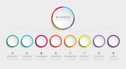 Infographic business concept design with icons and 8 options or steps. Can be used for flow charts, presentations, websites, banners, publications, EPS 10.