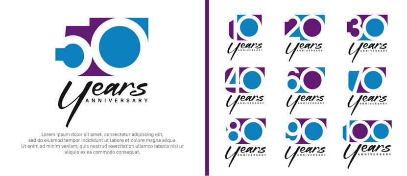 anniversary logo set. vector design purple and blue color can be use for celebration moment