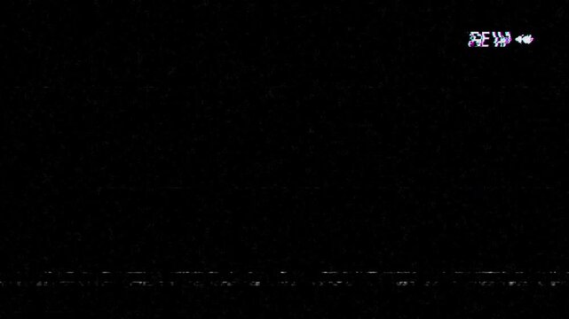 Rew VHS Rewind video tape glitch effect on black background. 4K Video