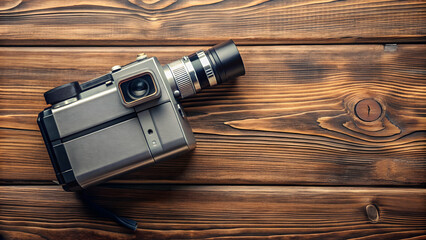 Vintage VHS camcorder on a wooden table , retro, outdated, analog, technology, recording, nostalgia, 80s
