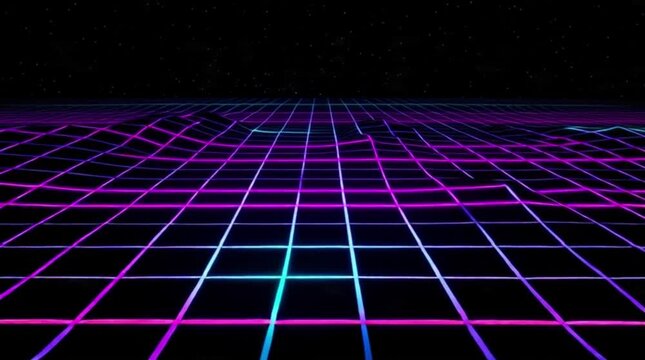 Cybernetic grid with neon colors and VHS-like scanlines creating a retro feel
