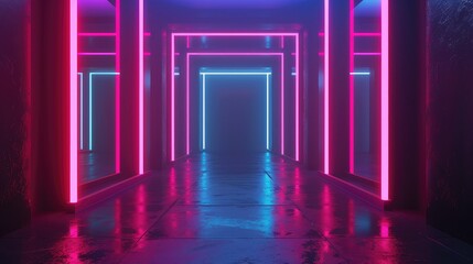 Shiny neon techno template. Neon lines background, 80s style laser rays