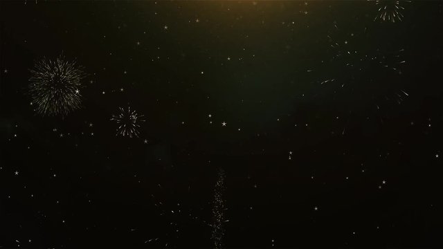 80th Happy birthday Greeting Card text Reveal from Golden Firework & Crackers on Glitter Shiny Magic Particles & Sparks Night star sky for Celebration, Wishes, Events, Message, holiday, festival