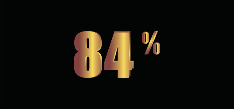 84 percent on black background, 3D gold isolated vector image