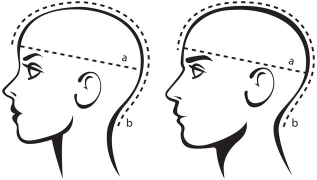 Stylized image of a male y ​female head. Template for selecting the size of a wig or hats or caps for women and men. Measuring size chart. Vector illustration isolated on white background