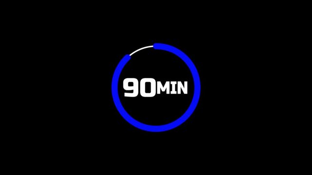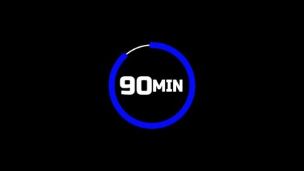 "Futuristic 90--Minute Countdown Timer with blue Circular Design and Arrow Loop Symbolizing animation, Sports timer ,Focus, and Urgency animation ." Stopwatch and Timer Icons Isolated animation .