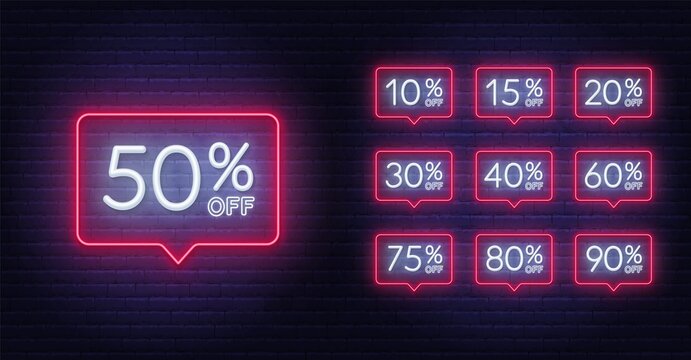 Different discount price 10, 20, 25, 30, 40, 50, 60, 70, 80, 90 percent Promotion sticker badge set for shopping marketing and advertisement. vector illustration