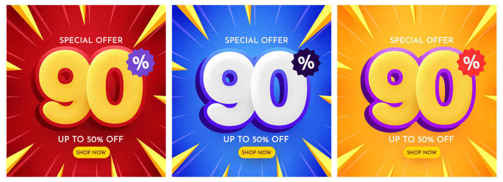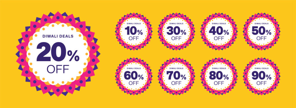 discounts numbers percent sign in red and white colours isolated on yellow background, from 10%,20%,30%,40%,50%,60%,70%,80%,90% discount's.
