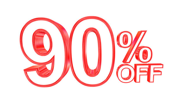 3d 90 percent off text with solid white and red metal outline effects isolated on a transparent background. 3d elements for graphic design.