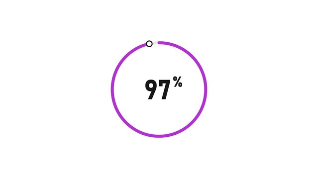 loading icon animation 97% circle. 97 percent circle round donut chart infographic .Infographic Element with Alpha Channel 4k video royalty free graphic animation purple color on a white background.