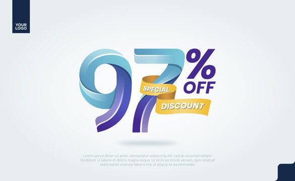 3d 97 percent off text with solid white and red metal outline effects isolated on a transparent background. 3d elements for graphic design.