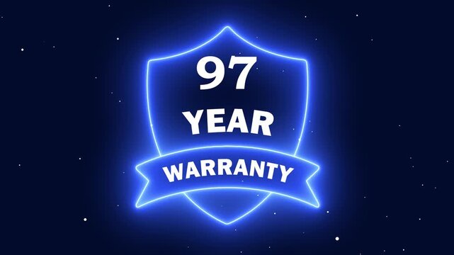 Neon 97 years anniversary 4K motion animation. Glowing 91 th Anniversary Celebration on Transparent Background, Alpha Channel. Great for greetings, celebrations, events, and gifts.
