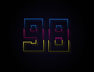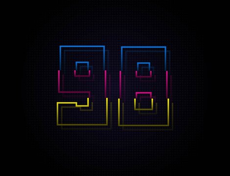 98 number colorful outline stroke font. Trendy, dynamic creative style design. Vivid vector font for logo, brand label, design elements, nightlife, application etc