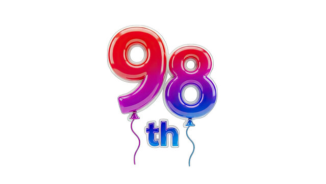 98th Birthday Balloon Celebration on White Background