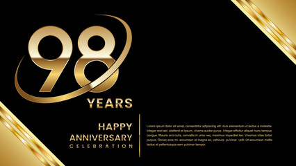98th Anniversary Celebration. Anniversary Template Design With Gold Number and Font, Vector Template Illustration