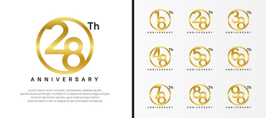 set of anniversary logo golden color number in circle and black text on white background for celebration