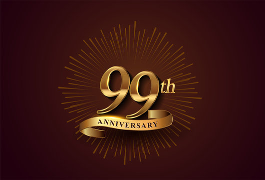 99th anniversary logotype with fireworks and golden ribbon, isolated on elegant background. vector anniversary for celebration, invitation card, and greeting card