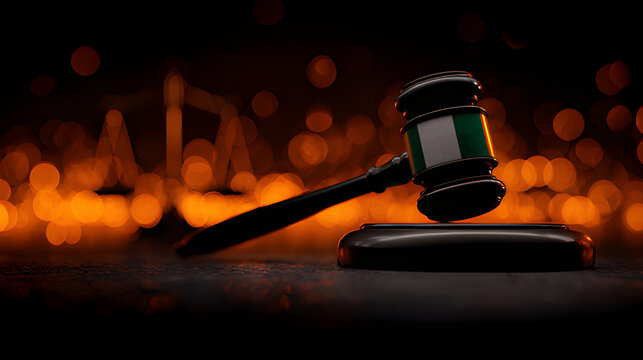 Wooden gravel with Nigeria green white green customized flag on color bokeh blur background