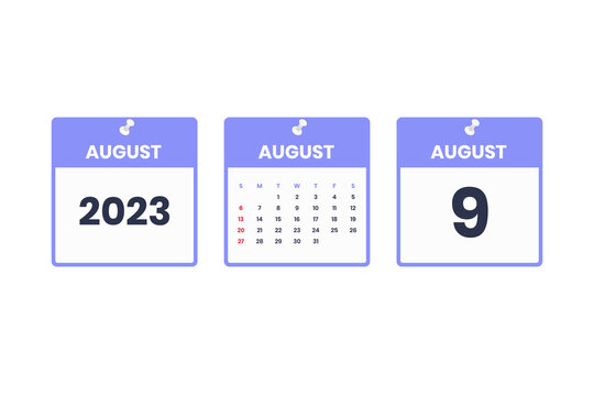 August calendar design. August 9 2023 calendar icon for schedule, appointment, important date concept