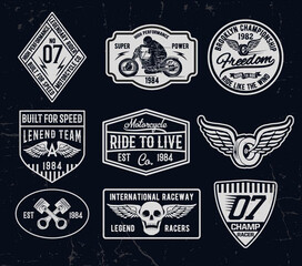 Set of vintage motorcycle labels, badges, logos and design elements.for t shirt and other uses.