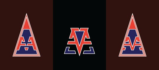 Vintage logo set of twin letter A in triangular shapes. Three beautiful logo designs for personal business or company branding. EPS10.