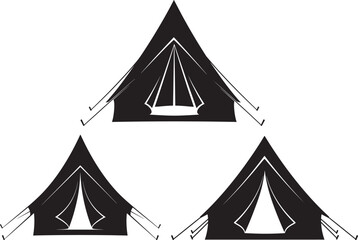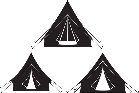 Three a frame canvas tents in a row silhouette