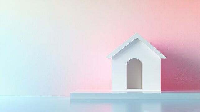 Real estate and business property ideas including a white model home inside a little box in a pastel color scheme