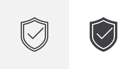 Security shield protected icon. line and glyph version, outline and filled vector sign. Shield with check mark linear and full pictogram. Symbol, logo illustration. Different style icons set