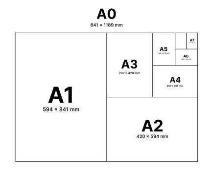 Paper guide sizes vectors a1 a2 a3 a4 a5 a6 a7 a8 a9 a10 for work sheet format graphics designer isolated illustrations