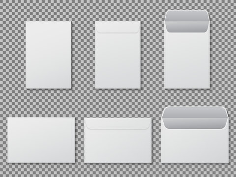 Envelope a4 mockup. Template paper letter, folder. Standard white blank letter envelopes a4 size. Open vertical and horizontal envelope letter mockup for office, mail. vector illustration