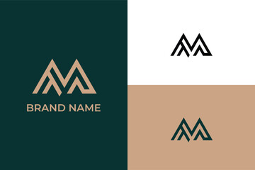 initial letter AA M abstract lineart logo, letter AA M mountain peak adventure and safety logo