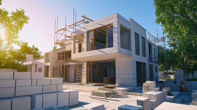 construction of a private cottage house: white gas blocks, aerated concrete, bricks